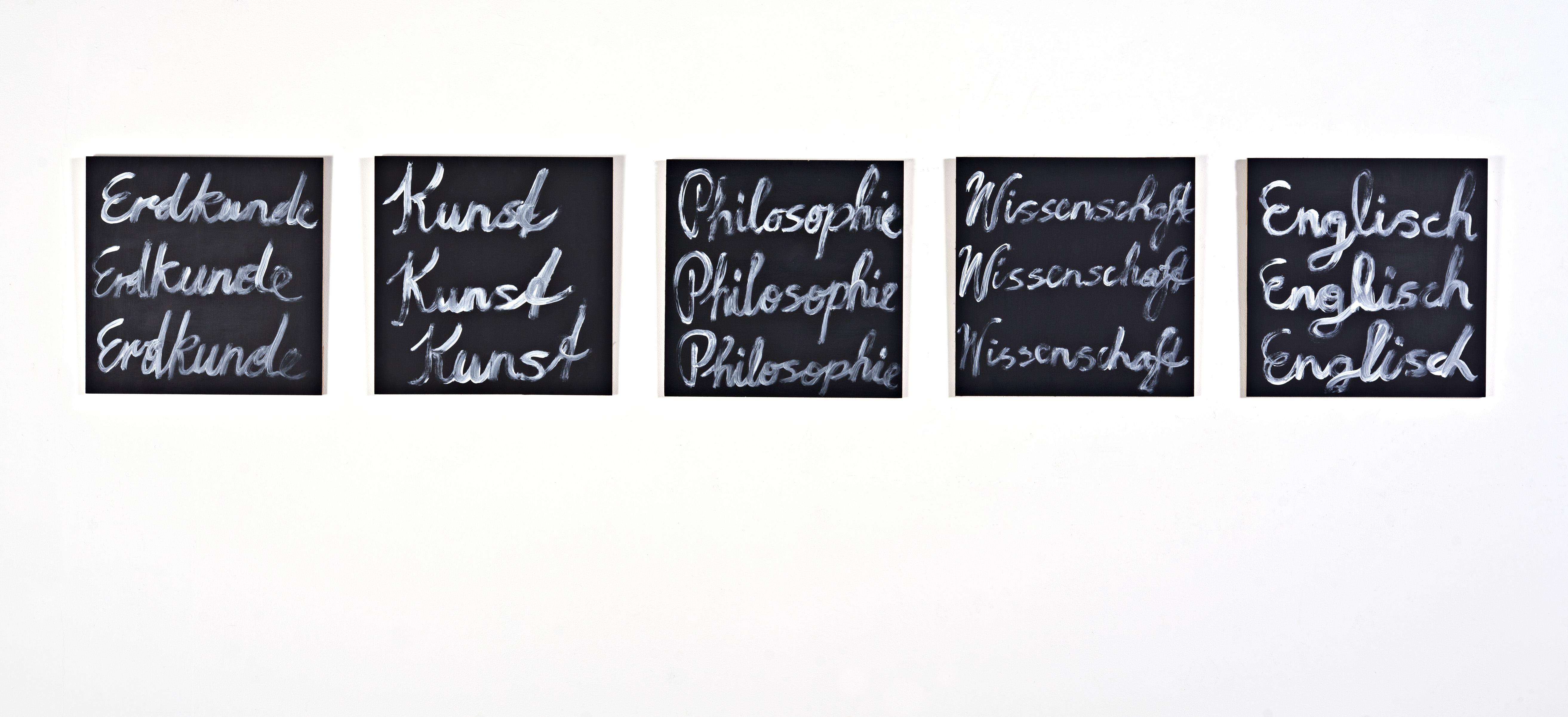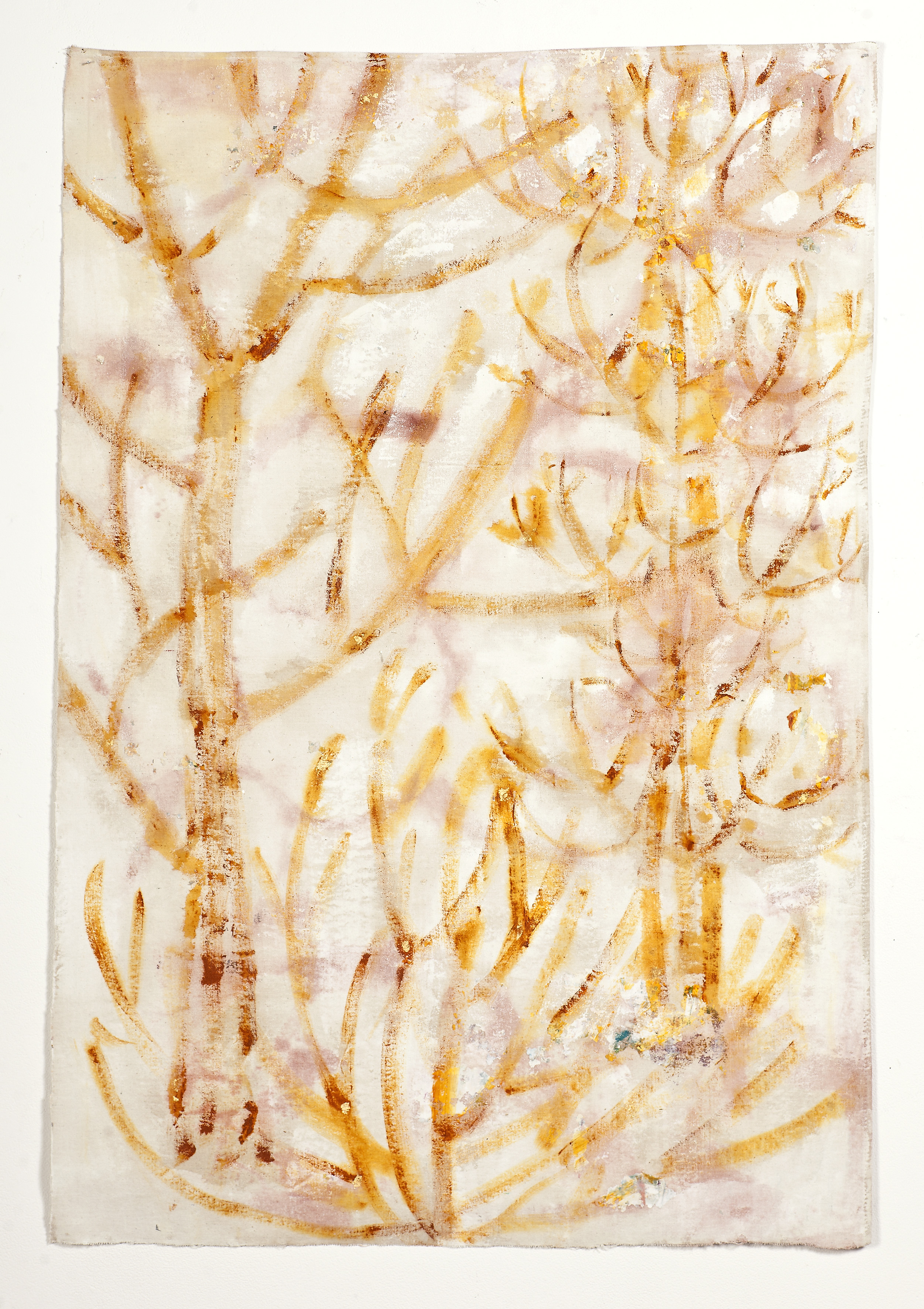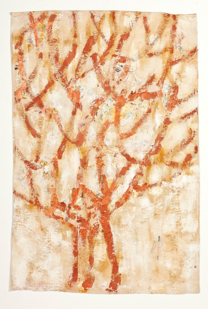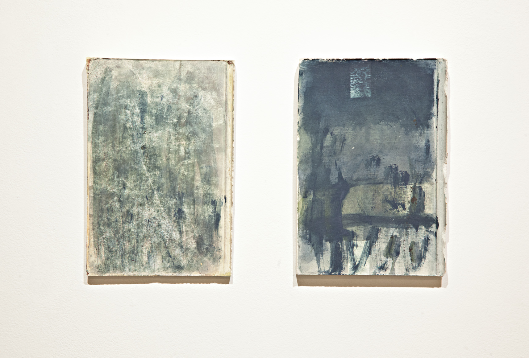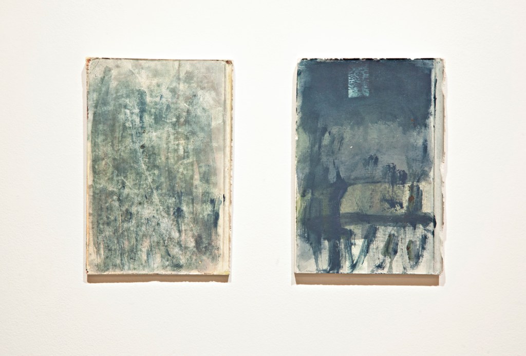 What’s new here is the presence, or the memory, of the “beautiful prospects” of others, other artist precursors, who came and looked and made something from their interaction with place under a southern sky. The artist draws on colonial artists whose work has stayed with her, seen in the Art Gallery of South Australia, in Visions of Adelaide 1836-1886 and other exhibitions: Light, Frome, von Guerard, Berkeley. She returns the idea of the sketch, not so much from life as from an inner topography that is at once art historical and personal. So we think of body painting, finger painting, undercoating, painting over. We think of abstraction and calligraphy and desert art. Rothko, Emily Kame Kngwarreye, Lee Ufan. We appreciate the muting of colour. ‘Blue is a darkness weakened by light’, in Goethe’s words, which seem to apply to the new work ‘Home Schooling’.